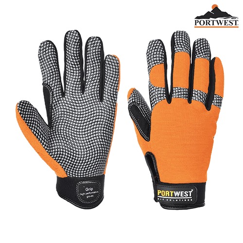 These popular Portwest gloves are a construction workers dream. Designed to give a high performance grip without the reduction of comfort and by using a silicone cross hatch on the palm with reinforced thumb and breathable sidewalls. With low linting construction comes minimal contamination and coming in a stylish orange and grey colour you’ll be the envy of all your work mates.