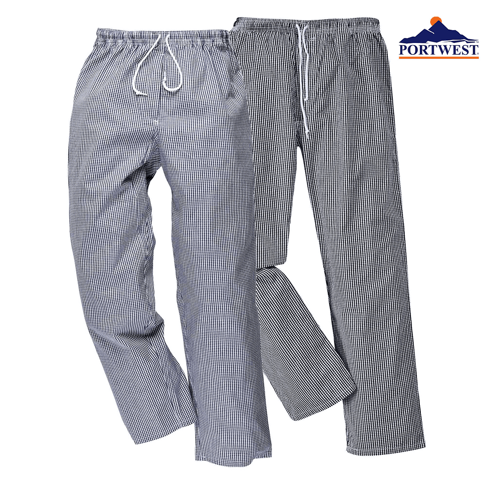 The chef bromley trouser with fully elasticated waistband for ultimate wearer comfort. Features include: one hip pocket, concealed zip fastening and a fully elasticated waist with drawcord. Washable at 60 Degrees.
