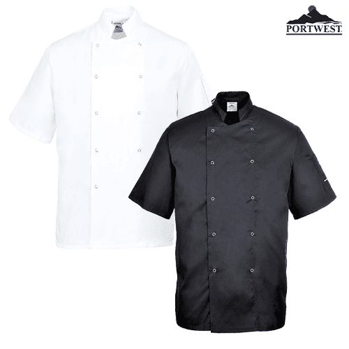 This modern and sophisticated jacket will meet the needs of all your team. The lightweight and durable fabric works to keep you cool and will ensure you look your best wash after wash. Features include a mandarin collar, stud front and handy sleeve pocket.